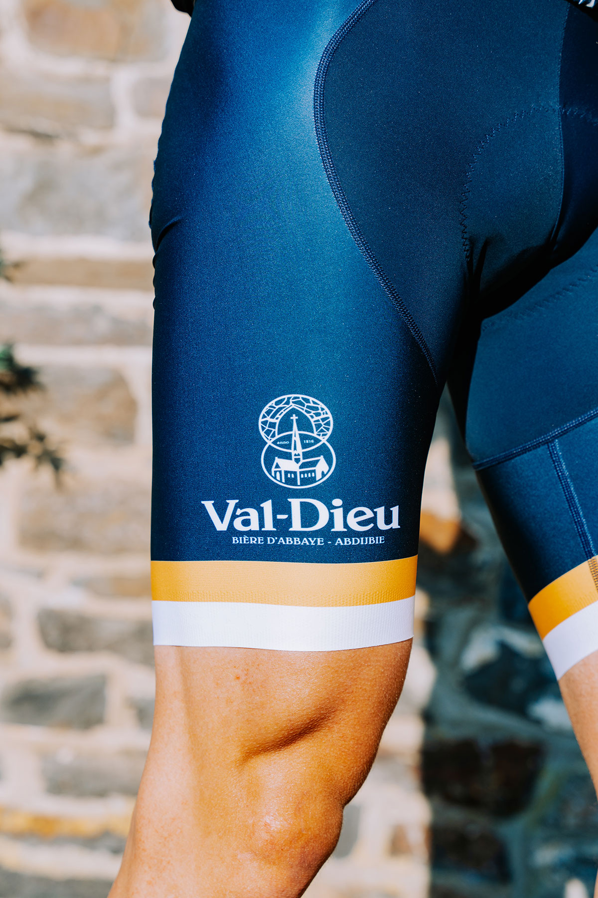 - Cuissard Cycliste Bleu Val-Dieu avec logo de la brasserie.